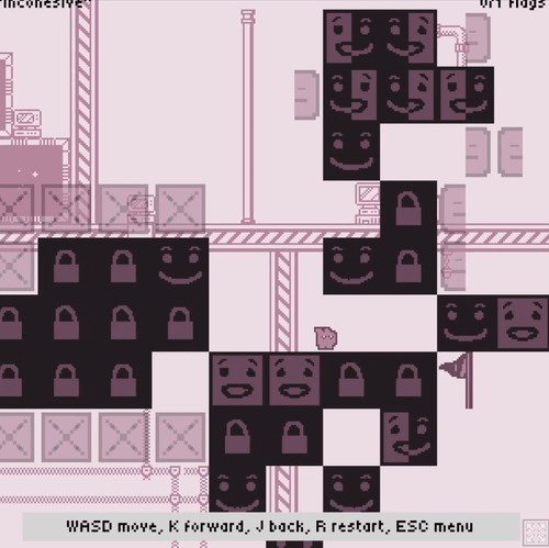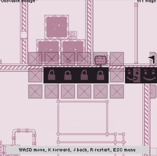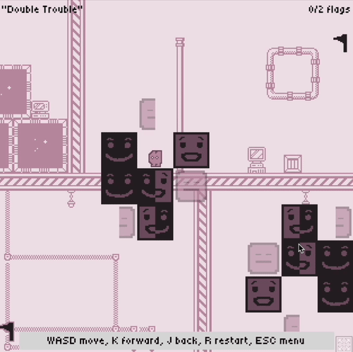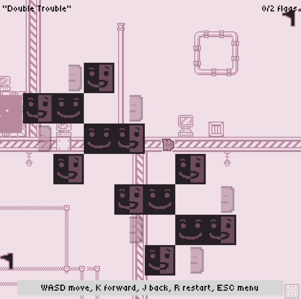 - Sometimes the little guy will get stuck in a block. Sometimes you can get out of it safely by ticking forwards/backwards, but if not, hit R to restart the level.